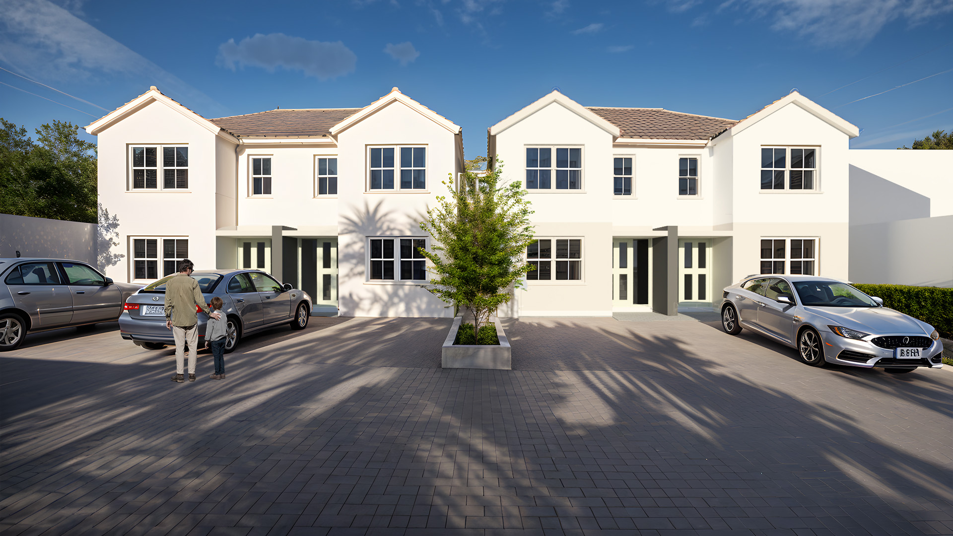 - Modern townhouse design: The exterior blends traditional and modern elements that complement the local architecture while standing out as a contemporary development.