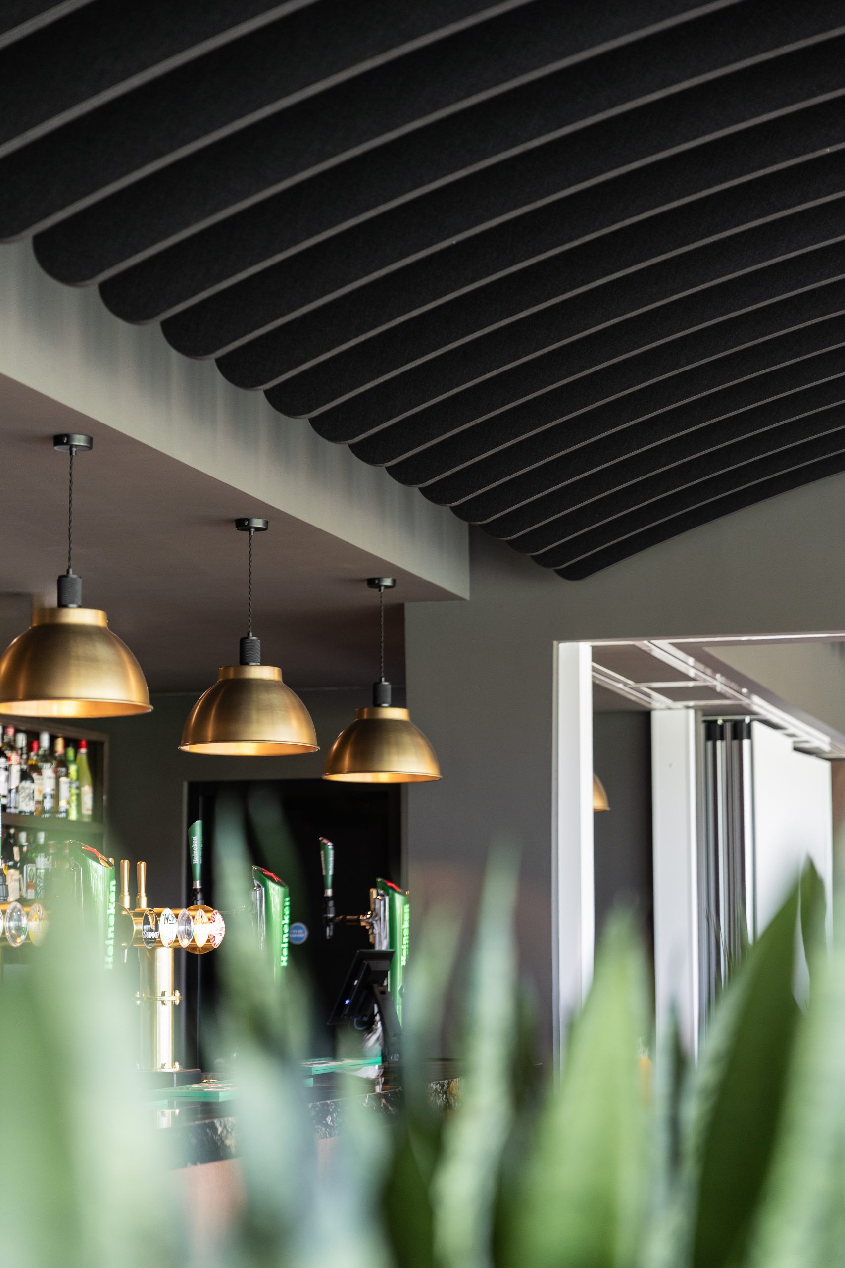 - Custom-designed baffle ceiling for improved acoustics and overall comfort